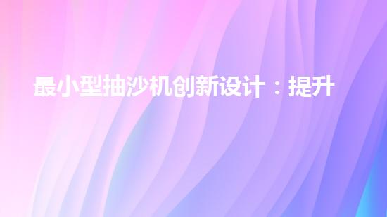 最小型抽沙機創(chuàng)新設計:提升效率的抽沙設備如何改變產業(yè)格局?