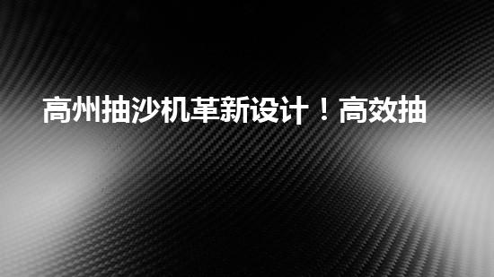電抽沙機革新設計,提升效率!沙設備關鍵詞解析及市場前景探索